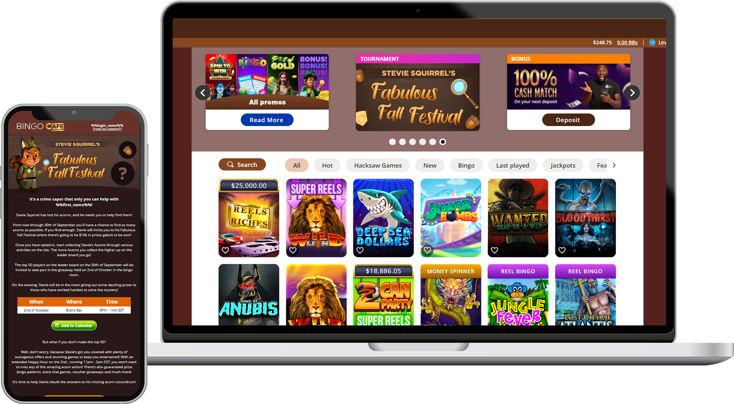 As a Graphic Designer for Bounce Interactive, I created graphics for the "Fabulous Fall Festival" on their casino sites. This competition invited participants to engage in a range of activities and games to accumulate points and ascend the leaderboard.